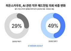 히든스카우트 "AI 직무 채용 의뢰 6개월 새 29%에서 49%로...