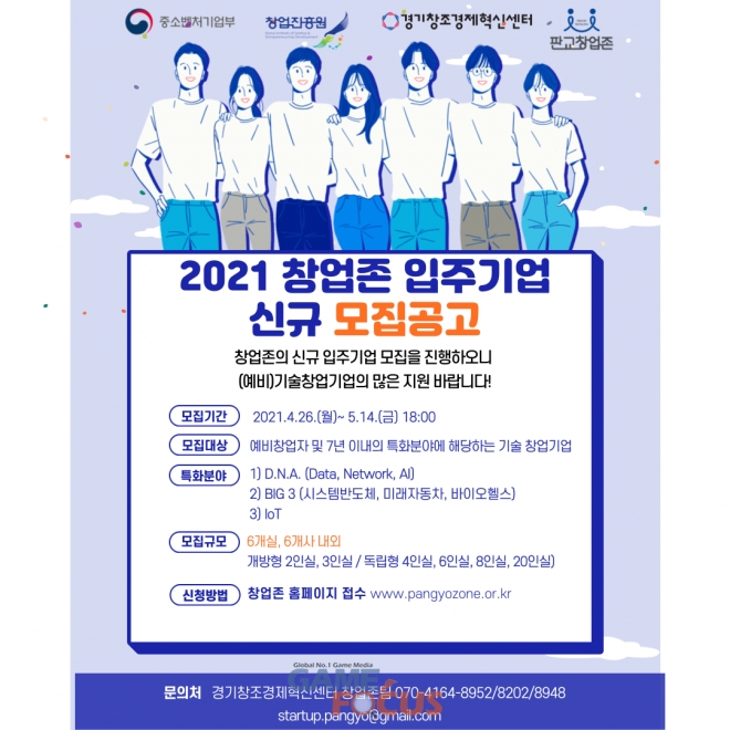 ‘판교 창업존’ 주관기관 경기창조경제혁신센터가 다음 달 14일까지 ‘2021 창업존 신규 입주기업 2차 모집’을 진행한다고 26일 밝혔다.