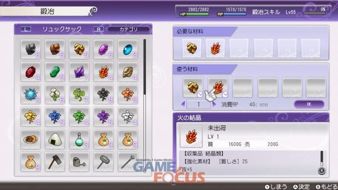 바다나 강에서 낚시를 하거나 던전에서 광석을 캐는 등 생활과 모험을 하면서 다양한 방법으로 아이템을 채집할 수 있다. 획득한 재료를 요리나 제련, 조제, 장비 제작에서 '합성'하여 사용하면 새로운 아이템을 만들어 낼 수 있다.