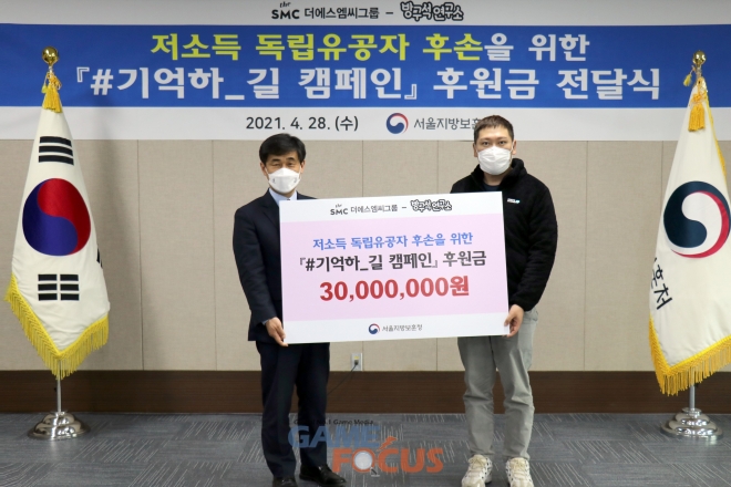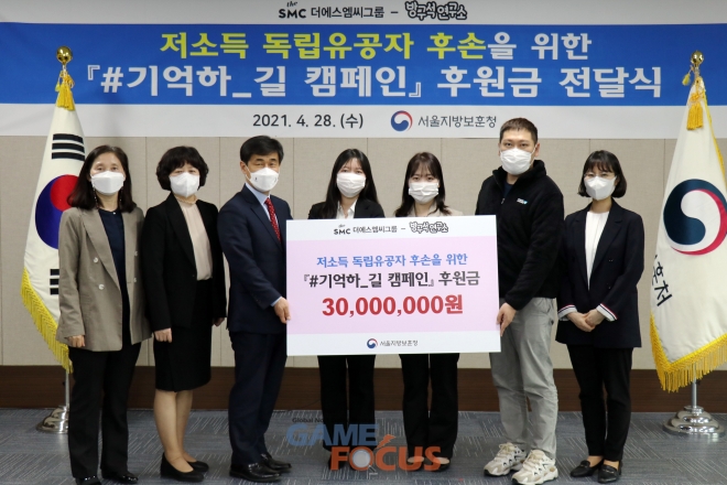 더에스엠씨그룹(대표 김용태)은 28일 서울지방보훈청 호국홀에서 자사의 메타 콘텐츠 플랫폼 '방구석연구소'와 우리은행이 함께 진행한 3.1절 기부 캠페인 '기억하_길(ROAD)'의 모금액 3000만원을 저소득 독립유공자 후손에게 전달했다고 29일 밝혔다.