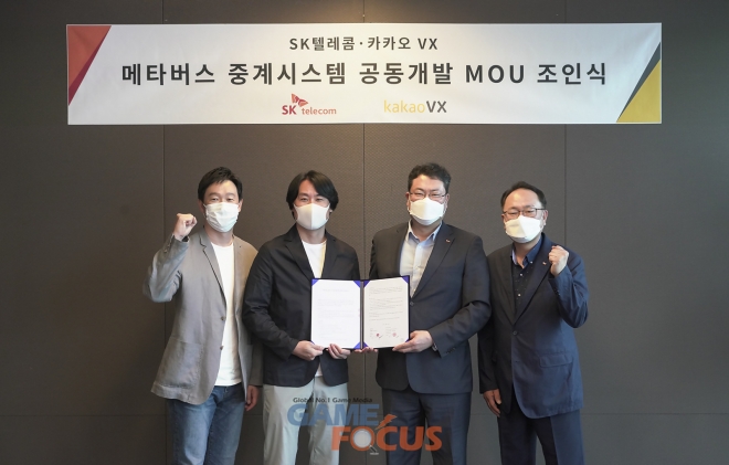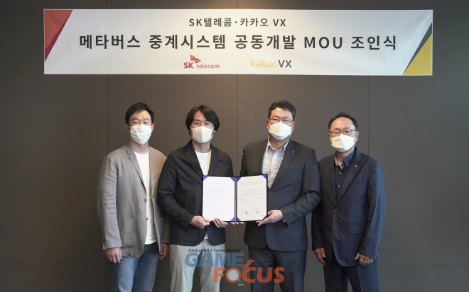카카오 VX는 SKT와 가상과 현실을 넘나드는 중계 방식인 '메타버스 중계 시스템' 공동 개발을 위한 업무 협약을 진행했다.