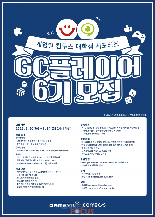 게임빌과 컴투스가 함께 진행하는 'GC플레이어'는 양사에 대한 높은 관심과 게임 산업 관련 열정을 지닌 대학생(휴학생 가능)이라면 누구든지 지원할 수 있다.