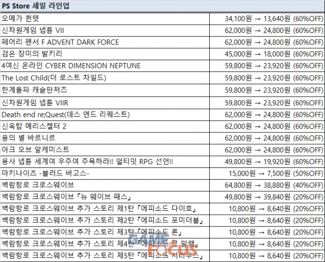 주요 PS Store 세일 라인업