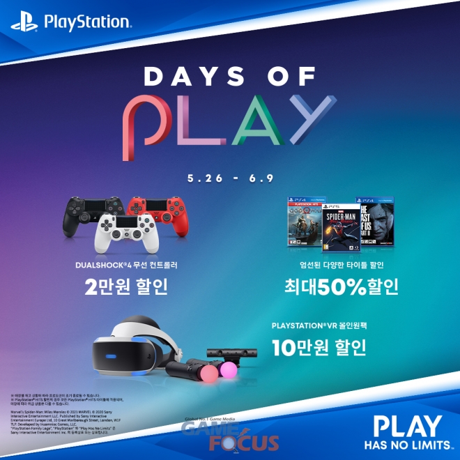 소니인터랙티브엔터테인먼트코리아(이하 SIEK)가 PlayStation 고객에게 큰 감사의 마음을 전하고 열정적인 커뮤니티를 기념하기 위해 2021년 5월 26일(수)부터 6월 9일(수)까지 15일 동안 Days of Play 세일을 진행한다.