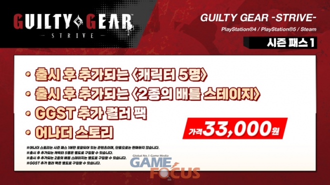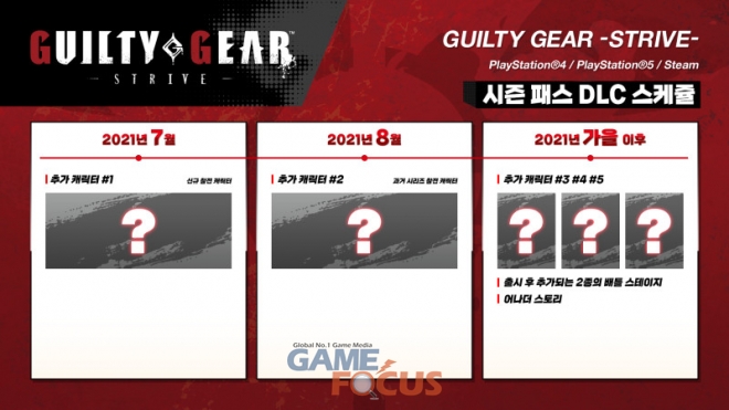 2021년 7월, '길티기어 -스트라이브-'에 처음 참전하는 신규 플레이어블 캐릭터 1명, 그리고 다음 달인 2021년 8월에 전작에 참전한 적이 있는 신규 플레이어블 캐릭터가 추가될 예정이며, 가을 이후에는 나머지 3 캐릭터가 공개되어 총 5캐릭터가 공개될 예정이다.