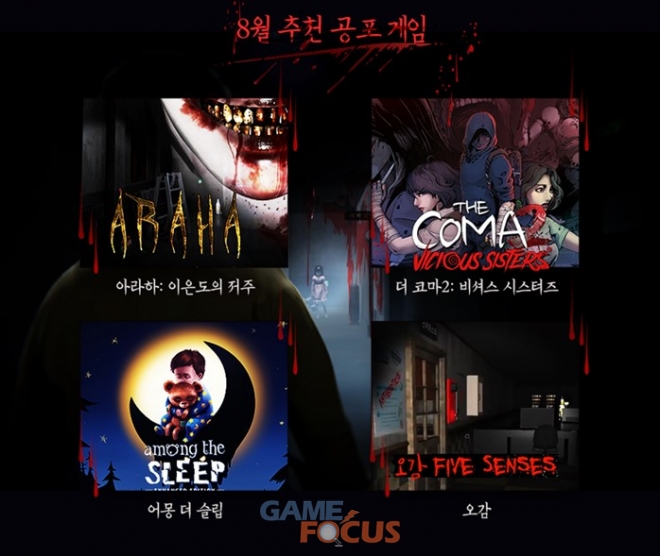 더 코마2는 학생들이 지속적으로 사라지는 현상이 발생하던 중 주인공이 학교를 찾아 갔다가 초자연적인 현상을 겪으며 벌어지는 일들을 담고 있으며, 어몽 더 슬립(Among the Sleep)은 스토브인디에서 직접 한글화한 게임으로 아기의 입장에서 플레이하는 공포 게임이다. 이 게임은 평소와는 다른 시각에서 경험하는 세상이 독특한 두려움을 느끼게 한다.