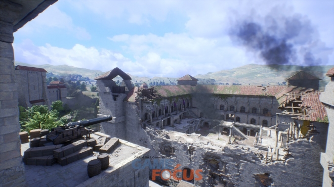 건물 내부는 중앙 거점을 중심으로 개방돼 있어 발리스타와 같은 원거리 무기를 전략적으로 사용할 수 있다. 건물 밖 작은 탑과 연결된 우회로를 통해 건물 3층 안으로 바로 들어설 수 있고, 게임 시작 1분이 지나면 전략 거점들이 활성화되어 점령이 가능해진다. 먼저, 합류거점인 B를 점령하면 대기 중인 아군 전사가 가까운 곳에서 합류할 수 있어 빠른 병력 충원이 가능하다. 언덕에 위치한 대표 거점인 C를 점령하면 포격 지원이 가능하고, 중앙 거점에 밀집한 상대를 공격할 수 있다. 하지만 건물 내 발리스타의 공격 범위에 있기 때문에 상대 공성 무기를 수시로 견제해야 한다.