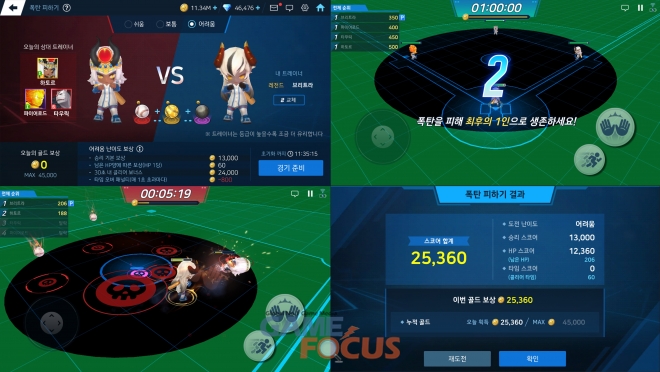 이번 업데이트에서는 색다른 재미와 더불어 게임 아이템인 골드를 쉽게 얻을 수 있는 미니 게임을 선보인다. 새롭게 등장하는 미니게임 '폭탄 피하기'는 폭탄을 피해 60초 동안 최후의 1인으로 살아남으면 승리하게 된다. 상대를 날려보내는 '밀치기'와 빠르게 위험을 탈출하는 '순간이동' 스킬을 적절한 타이밍에 사용하면 짜릿한 재미를 느낄 수 있다. 총 3가지 난이도를 제공하며 난이도가 높아질 수록 상대할 적의 수와 폭탄 종류가 늘어난다. 보상으로 하루 최대 45,000 골드까지 획득할 수 있어 팀 성장에 지속적으로 필요한 필수 재화 수급이 조금 더 수월해질 것으로 기대된다.