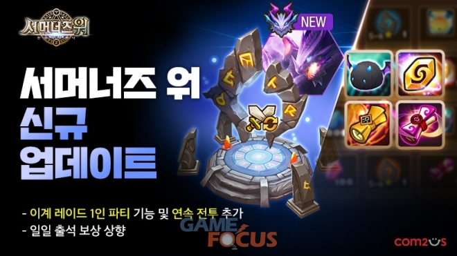 컴투스(대표 송재준, 이주환)는 글로벌 히트작 '서머너즈 워: 천공의 아레나(이하 서머너즈 워)'에 1인 레이드 플레이를 비롯한 다양한 콘텐츠를 업데이트 했다.