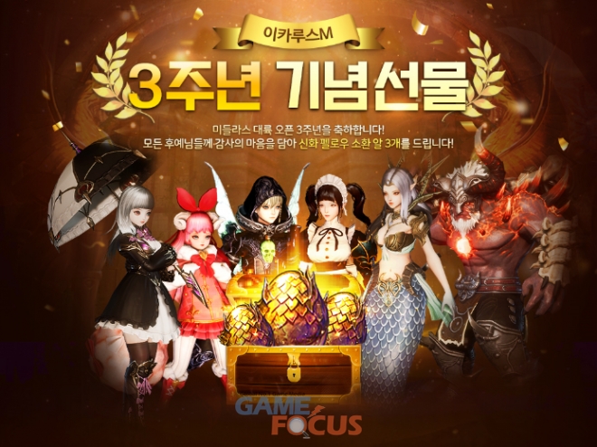 3주년 감사이벤트에 대한 자세한 내용은 이카루스M 공식 카페에서 확인할 수 있다.