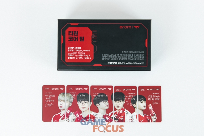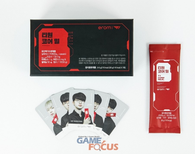 티원코어밀은 이롬몰과 티원샵에서 구매할 수 있으며, 티원코어밀을 구매하는 모든 고객에게는 T1 선수들의 포토 카드도 랜덤으로 제공한다.