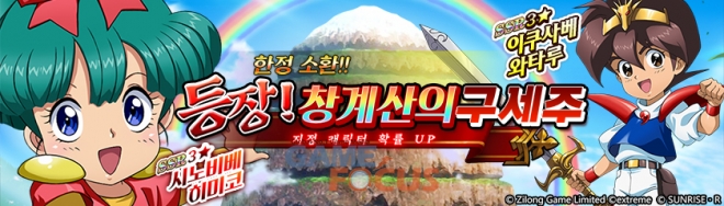 콜라보 기간 동안 획득할 수 있는 영웅은 SSR 영웅 이쿠사베 와타루와 시노비베 히미코, SR 영웅 츠루기베 시바라쿠까지 총 3명의 영웅이다. 이중 SSR 영웅들은 2인 배너를 통하여 획득할 수 있으며, SR영웅 시바라쿠는 위에서도 언급했던 재료 던전을 통해 무료로 획득할 수 있다.