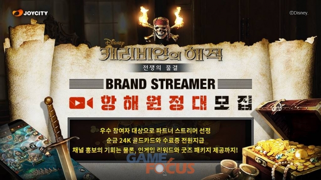 조이시티(대표 조성원)가 모바일 전략 게임 '캐리비안의 해적: 전쟁의 물결' 공식 브랜드 스트리머 '항해 원정대'를 모집한다.