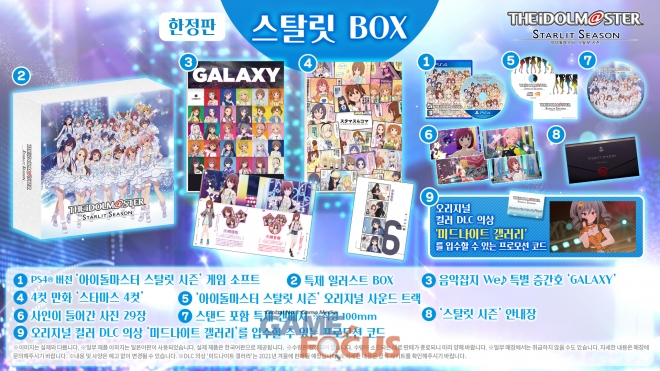 PlayStation4 버전의 게임 소프트 본편을 비롯해 특제 일러스트 BOX, 음악잡지 We♪ 특별 증간호 'GALAXY', 4컷 만화 '스타마스 4컷', '아이돌마스터 스탈릿 시즌' 오리지널 사운드 트랙 등 호화로운 구성이 특징이다.