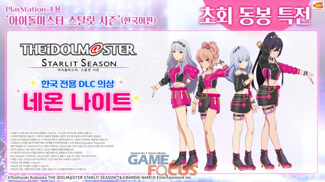 한국 프로듀서를 위한 DLC 의상 '네온 나이트'는 패키지 버전의 초회 동봉 특전으로 제공된다. 귀여움을 강조한 강렬한 핑크 컬러에 차분한 블랙 컬러를 매치하여, 쿨하고 세련된 스타일과 사랑스러운 매력을 함께 표현했다.