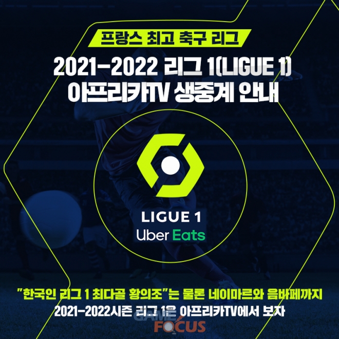 아프리카TV는 오는 7일(토)부터 프랑스 프로축구 리그 '2021-2022시즌 리그1(LIGUE 1)'의 생중계 및 VOD 서비스를 제공한다고 밝혔다. '리그1(LIGUE 1)'은 프랑스 프로축구 1부 리그로 영국의 프리미어리그, 스페인의 프리메라리가, 이탈리아 세리에A, 독일 분데스리가 등과 함께 유럽 대표 5대 리그로 꼽힌다.