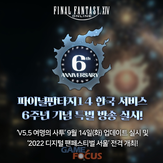 PC MMORPG '파이널판타지14'의 6주년 기념 '특별방송'은 '파이널판타지14' 공식 홈페이지에서 다시 시청할 수 있으며, '파이널판타지14 디지털 팬페스티벌 2022 서울'에 보다 자세한 내용은 공식 사이트에서 확인 가능하다.