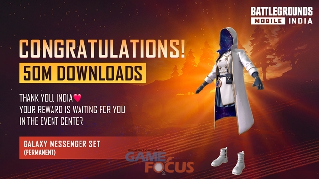 크래프톤은 '배틀그라운드 모바일 인도' 5000만 다운로드 달성을 기념해 스킨을 포함한 다양한 보상 이벤트를 진행한다. 더불어 8월 15일 인도의 독립 기념일을 맞이하여 소셜미디어 채널과 인게임에서 인도만을 위한 다양한 이벤트를 진행하고 있다.