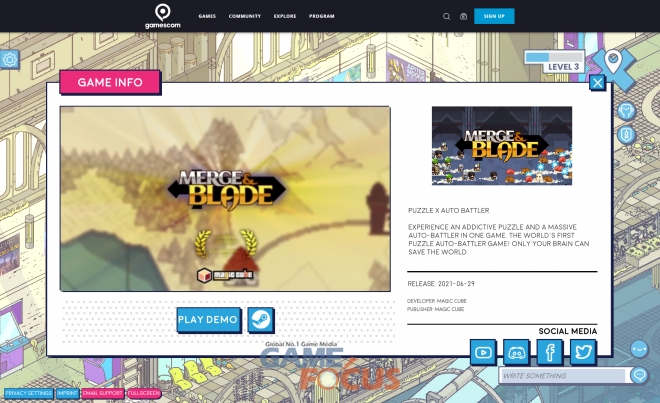 매직큐브가 자사에서 개발한 인디게임 '머지 앤 블레이드'로 '게임스컴 2021'에 참가했다.