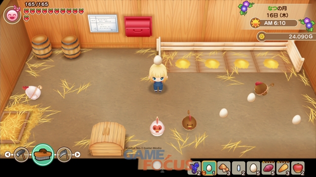 -작물을 기르자. 목장 밭에서 채소와 과일을 기를 수 있다. 매일매일 돌봐주고, 성장하면 수확. 수확하면 출하해서 돈으로 바꾸자!