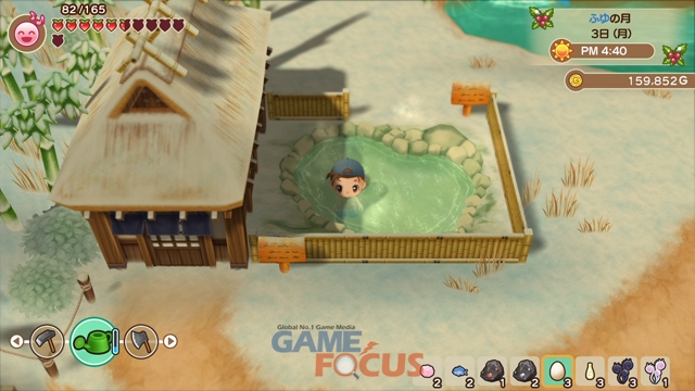이 외에도 재미있는 요소가 가득하다. 물고기를 낚거나 요리하고 온천에 들어가는 등 자유로운 생활을 만끽할 수 있다.