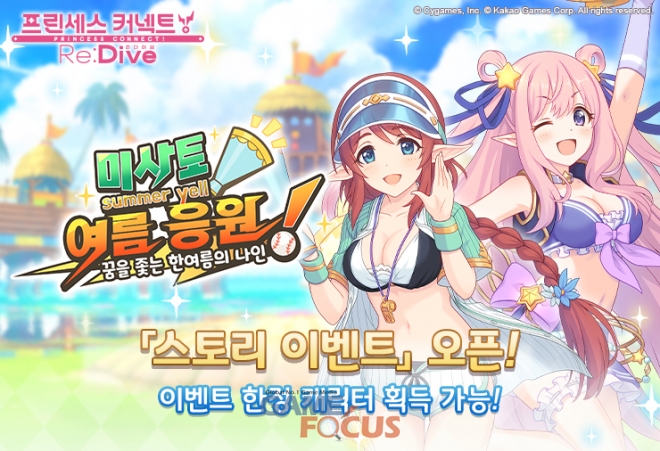 또한, '프린세스 커넥트! Re:Dive(리:다이브)'에서는 스토리 이벤트 '미사토 여름 응원! 꿈을 좇는 한여름의 나인'을 진행한다. 이용자들은 길드 '포레스티에'를 중심으로 한 특별한 스토리를 감상할 수 있다. 이번 이벤트 퀘스트와 보스 토벌 이벤트를 통해 '미사토(여름)'와 '아야네'의 메모리 피스를 대량으로 획득할 수 있고, 경험치를 1.5배 획득할 수 있는 캠페인에도 참여할 수 있다.