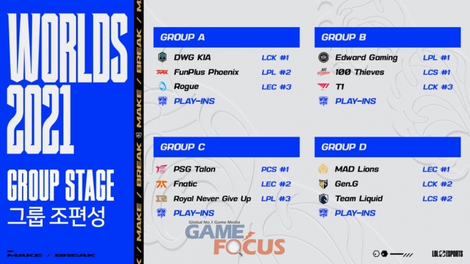 16강 그룹 스테이지 추첨에서는 2020년 월드 챔피언십 우승팀이자 LCK 1번 시드인 담원 기아가 A조, LPL 1번 시드인 에드워드 게이밍(EDG)이 B조, PCS 1번 시드인 PSG 탈론이 C조, LEC 1번 시드인 매드 라이온스가 D조에 편성됐다.