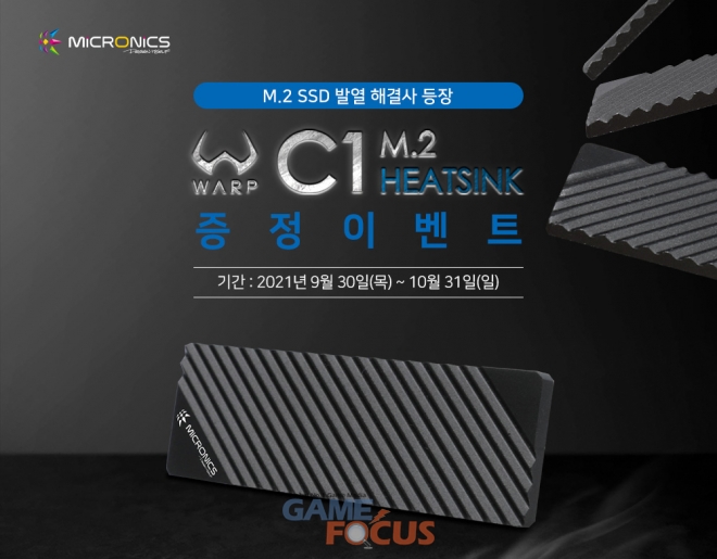 한미마이크로닉스(대표: 강현민, 이하 마이크로닉스)는 M.2 2280 규격 SSD의 발열을 해소하는데 도움을 주는 방열판 'WARP C1 M.2 HEATSINK(워프 C1 M.2 히트싱크)'의 출시 이벤트를 10월 31일까지 진행한다. 이번 이벤트는 마이크로닉스의 첫 SSD 방열판 출시를 기념하고 많은 이에게 제품을 알리고자 기획된 것으로 자사 제품을 구매하거나 구매했던 소비자가 대상이다.