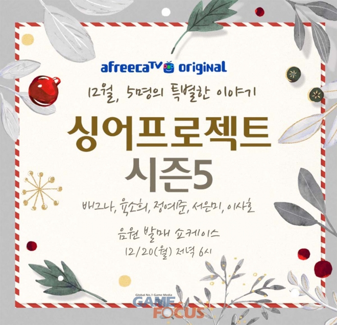 아프리카TV의 '싱어프로젝트 시즌5' 우승자 5인의 음원 발매 및 쇼케이스가 진행된다.
