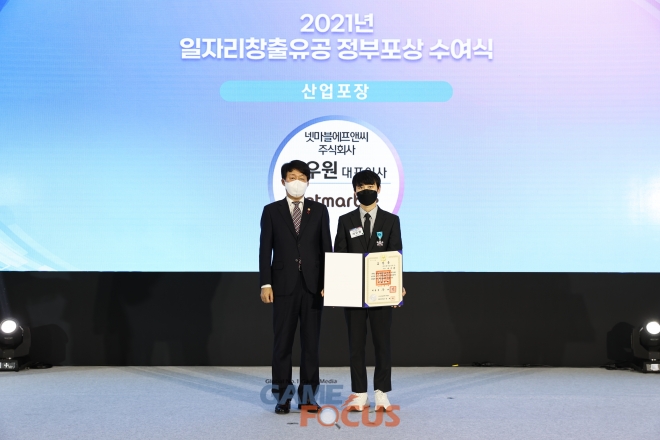 넷마블(대표 권영식, 이승원)은 자회사 넷마블에프앤씨 서우원 대표가 신규 일자리 창출 및 고용시장 활성화에 기여한 공로를 인정받아 지난 23일 열린 ‘2021년 일자리창출 유공 정부포상’에서 산업포장을 수상했다고 27일 밝혔다.