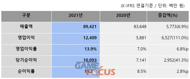 이스트소프트(대표 정상원)는 14일 K-IFRS 연결재무제표 기준 2021년 매출액 894억 원, 영업이익 124억 원을 기록했다고 잠정 공시했다.