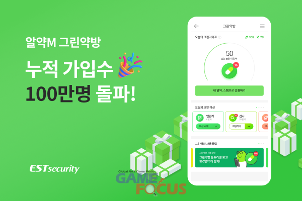 이스트시큐리티(대표 정상원)는 모바일 백신앱 '알약M'에서 제공하는 폰케어형 리워드 서비스 '그린약방'의 누적 가입자가 100만 명을 돌파했다고 2일 밝혔다.