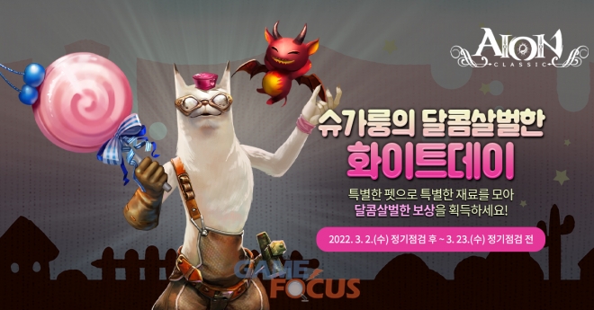 클래식 서버 이용자는 23일까지 '슈가룽의 달콤살벌한 화이트데이' 이벤트에 참여할 수 있다. 대도시와 종족 요새에 등장하는 NPC에게 퀘스트를 받으면 '이벤트 펫, 타이틀 카드(기간제)'를 얻는다. 특정 인던의 몬스터를 처치하고 얻은 '달콤한 사탕'을 펫에게 주면 상자를 받을 수 있다. 상자를 개봉해 얻는 '무지개 사탕 결정'으로 퀘스트를 완료하면 '화이트데이 무기 선택 상자'와 '아라카 시간 주문서' 등을 획득할 수 있다.