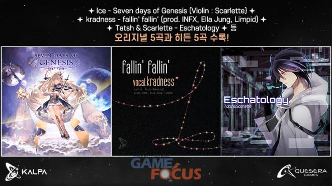 아울러 누적 연주 1000만 회 돌파를 기념해 모든 수록 곡이 오리지널 곡으로 구성된 1주년 기념 음악 앨범 <Daybreak>도 새롭게 선보인다. 넷가수를 의미하는 우타이테로 유명한 kradness가 부르고 INFX, Ella Jung, Limpid가 공동 작곡, Arata Nakatsuji가 작사에 참여한 대작 ‘fallin' fallin'’, 레이아크의 사운드 디렉터로 일했던 홍콩 출신의 인기 작곡가 Ice가 참여한 ‘Seven days of Genesis (Violin : Scarlette)’, 코나미의 비트매니아 IIDX에서 사운드 디렉터로 일했던 일본의 유명 작곡가 Tatsh가 참여한 ‘Eschatology’ 등이 눈에 띈다. 특히 Ice와 Tatsh는 KALPA의 사운드 디렉터와 공동 작업을 통해 KALPA 만의 오리지널 곡을 완성했다.