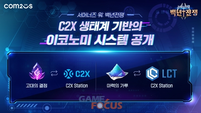 한국 등 일부 국가를 제외한 글로벌 지역에서는 전자 지갑인 'C2X 스테이션'을 통해 '마력의 가루'와 '고대의 결정'을 'C2X'와 '백년전쟁' 고유 디지털 토큰인 'LCT'로 교환할 수 있고, 'C2X'와 'LCT' 역시 상호 교환할 수 있는 프로토콜 경제로 구현될 예정이다.