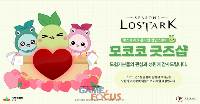 스마일게이트 RPG는 이번 '모코코 굿즈샵' 오픈을 통해 발생한 수익금 전액을 모험가들의 이름으로 기부할 예정이다. 또한, 모험가들은 이 기부 캠페인에 동참하고자 하는 마음을 담아 오는 30일(수)까지 공식 홈페이지에서 '마음 전하기' 하트를 누르고 '모코코 굿즈샵' 오픈 이벤트에도 참여할 수 있다.