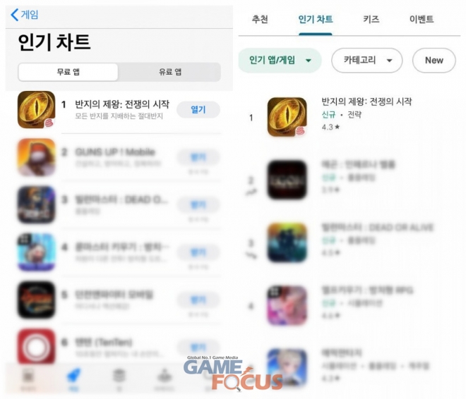 반지의 제왕:전쟁의 시작은 지난 4월 14일 국내 정식 출시됐으며, 신규 전략 시뮬레이션을 찾던 엄지족들의 호응 아래 상승세가 가파르게 향상했다. 그 결과 앱스토어의 경우 출시 당일인 지난 4월 14일, ‘인기 차트’ 1위를 단숨에 기록해 분위기가 고조되었으며, 구글 플레이스토어 또한 4월 16일 오전을 기점으로 인기 1위에 랭크되며 유저들 사이에서 좋은 반응을 얻고 있다.
