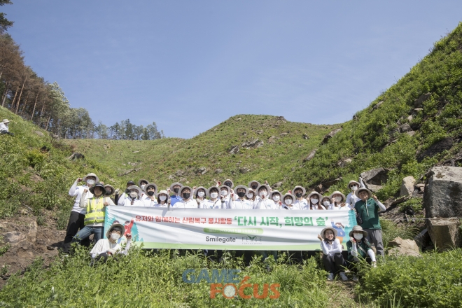 스마일게이트 희망스튜디오(이사장 권혁빈, 이하 ‘희망스튜디오’)는 게임 유저들과 함께 지난 28일 강원도 강릉시 옥계면 남양리 일대에서 산림복구 봉사활동을 실시했다고 30일 밝혔다.