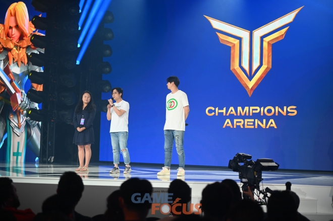 챔피언스 아레나는 행사 둘째날 메인 세션으로 소개됐으며 차세대 턴베이스 RPG 기대작으로 많은 관중들의 호응을 모았다.