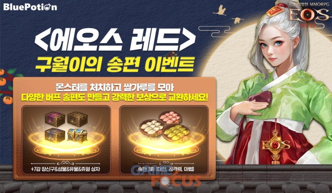 블루포션게임즈(대표 정재목, 조승진)는 직접 개발하고 서비스하는 모바일 정통 MMORPG ‘에오스 레드’가 게임 콘텐츠 확장과 가을맞이 이벤트를 시작했다고 24일 밝혔다.