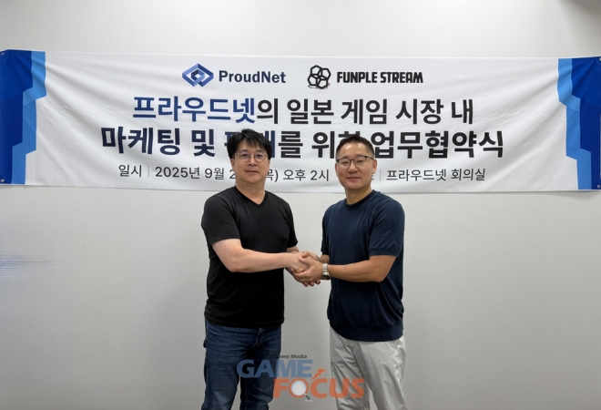 프라우드넷(대표 최성원)은 글로벌 게임 퍼블리싱 전문 기업 ‘펀플스트림(Funple Stream, 대표 김현)’과 일본 게임 시장 공략을 위한 전략적 업무협약(MOU)을 체결했다고 26일 밝혔다.