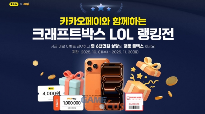 PC방 관리프로그램 ‘피카’ 시리즈를 공급하는 있는 미디어웹(대표 김종인)이 카카오페이(대표 신원근)와 함께 10월 1일부터 2개월간 자사의 크로스플레이 게임 전용 플랫폼인 ‘크래프트박스 2.0’를 통해 총 6천만 원 규모의 리그 오브 레전드(이하, 롤) 랭킹전 이벤트를 대대적으로 진행한다고 밝혔다.