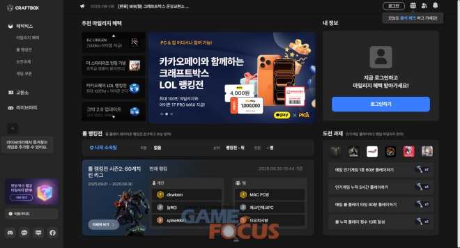 이벤트 기간 동안 크래프트박스 코인 교환소 전용 미션 수행을 통해 획득한 코인으로 아이폰 17 PRO MAX, 미션 마일리지 등 경품 응모가 가능하다. 롤 랭킹전 최종 1위 유저에게는 최대 100만원 상당의 미션 마일리지가 지급된다. 롤 랭킹전 첫 참여자 전원에게는 1,000 미션 마일리지 선착순 지급과 랭킹전 순위에 맞춰 추가 마일리지를 지급한다.