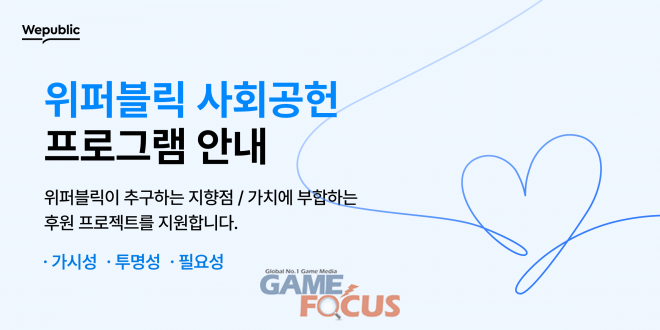 위메이드(대표 박관호)가 블록체인 기반 투명사회 플랫폼 ‘위퍼블릭’(Wepublic)을 기반으로 한 사회공헌 프로그램 ‘투명한 나눔’을 오늘(1일)부터 12월 31일(수)까지 운영한다.