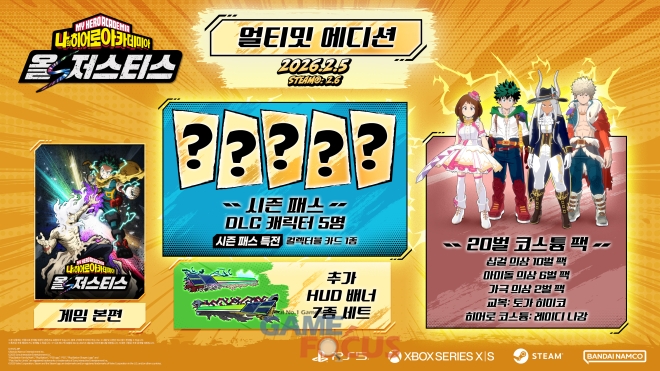 반다이남코 엔터테인먼트 코리아(지사장 장태근)는 '나의 히어로 아카데미아' 가정용 게임 최신작, PlayStation®5, Xbox Series X|S용 '나의 히어로 아카데미아 올즈 저스티스'(한국어판)를 2026년 2월 5일(목) 발매한다고 발표했다. (Steam® 버전은 2026년 2월 6일 발매)