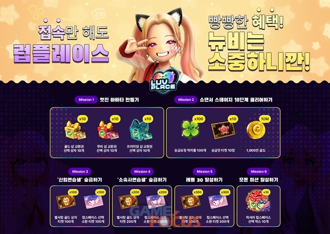 럽플레이스 게임을 내려받은 다음, 캐릭터를 생성한 신규 유저라면 누구나 참여할 수 있는 이번 신입 스타 특별 이벤트는 게임에 처음 입문한 유저들이 보다 쉽고 즐겁게 플레이할 수 있도록 구성된 다양한 미션형 이벤트와 성장 지원 프로그램으로 구성돼 있다.