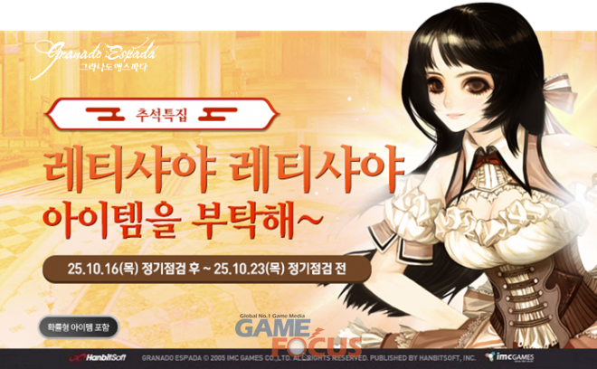 한빛소프트에서 퍼블리싱하고 IMC게임즈에서 개발한 PC MMORPG(대규모다중접속역할수행게임) '그라나도 에스파다'가 명절 후유증을 날리는 초특급 구성의 '레티샤 상자'를 선보였다.