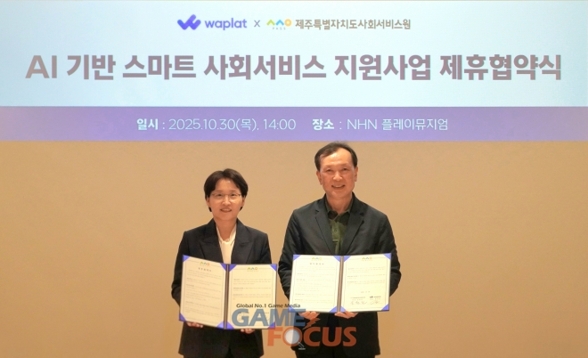 협약식은 30일 NHN 판교 사옥 ‘플레이뮤지엄’에서 제주사회서비스원 문원일 원장, 와플랫 황선영 대표 등 주요 관계자가 참석한 가운데 진행됐다.
