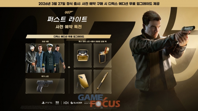 오늘부터 시작하는 예약 판매를 통해 타이틀을 구매하는 경우, 본 타이틀을 디럭스 버전으로 업그레이드할 수 있는 「007 퍼스트 라이트 디럭스 에디션」 콘텐츠가 특전으로 제공된다.