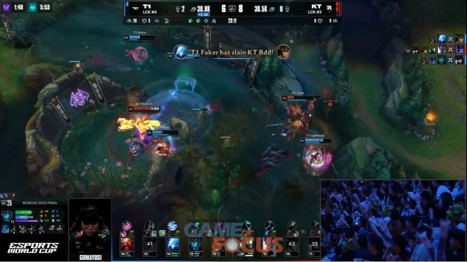 창단 첫 ‘리그 오브 레전드 월드 챔피언십(롤드컵, 이하 월즈)’의 우승을 꿈꾼 kt 롤스터 선수들과 유일무이 월즈 6회 우승, 쓰리핏 달성의 대업을 꿈꾼 T1의 선수들이 최고의 경기를 선보였던 2025 월즈 결승전이 올해 월즈의 첫 경기 IG와의 플레이인에서 승리한 T1이 우승하며 수미상관으로 마무리됐다.